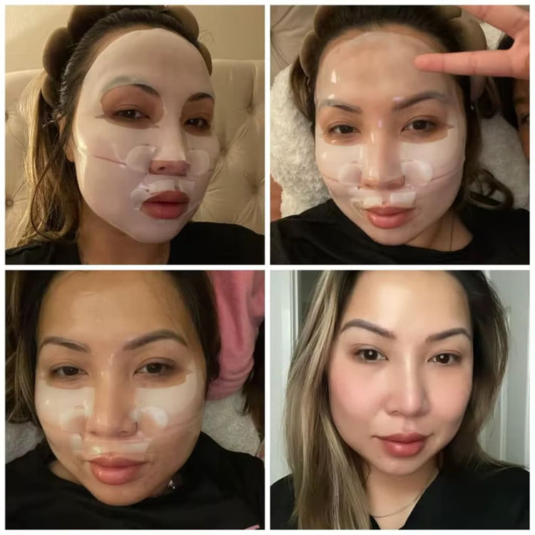 Check out how BioCollagen mask plumps and firms while you sleep. Each visual shows the lasting hydration and wrinkle-smoothing power in action.